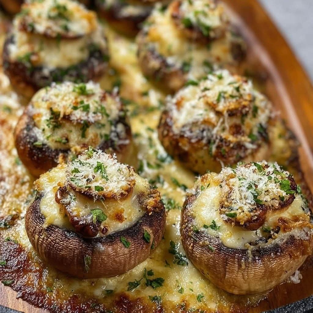That looks like a tray of cheesy stuffed mushrooms – golden, garlicky, and irresistible!