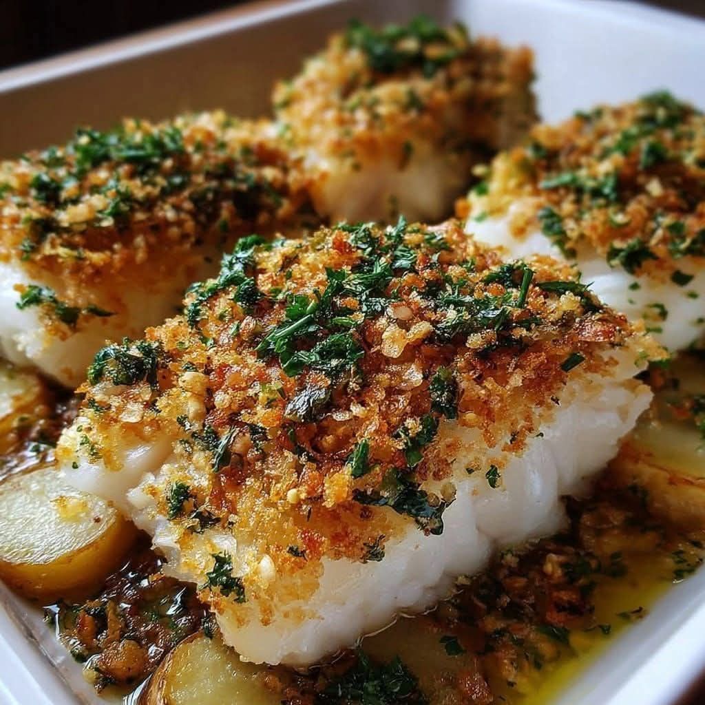 Baked Cod with Garlic Herb Crumb Topping Recipe