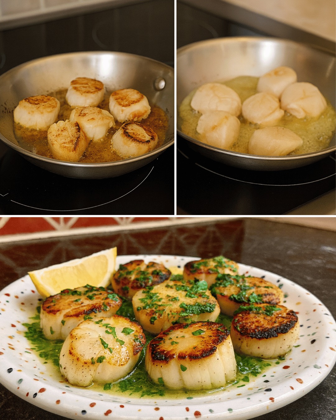 Golden brown, melt-in-your-mouth scallops with that parsley butter that perfumes the whole plate… a true delight 😍🧈🌿
