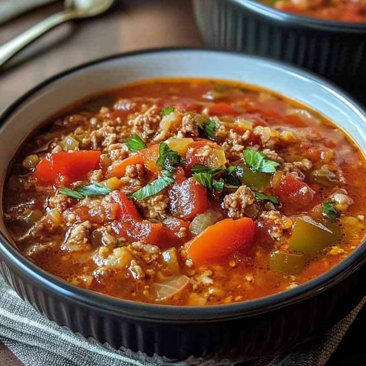 This soup is a great way to enjoy the flavors of stuffed peppers without the extra steps of stuffing and baking. It’s also versatile and customizable—swap the ground beef for turkey, or add extra vegetables for more texture and nutrition. The combination of tender beef, sweet bell peppers, and a rich tomato broth makes this a dish that everyone will enjoy.