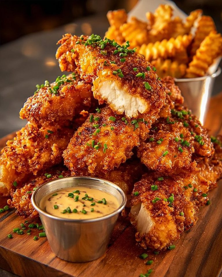 These chicken strips are wonderfully crispy on the outside and deliciously juicy on the inside – perfect as a main course or a party hit! Quick to prepare, irresistibly delicious, and perfect for dipping.